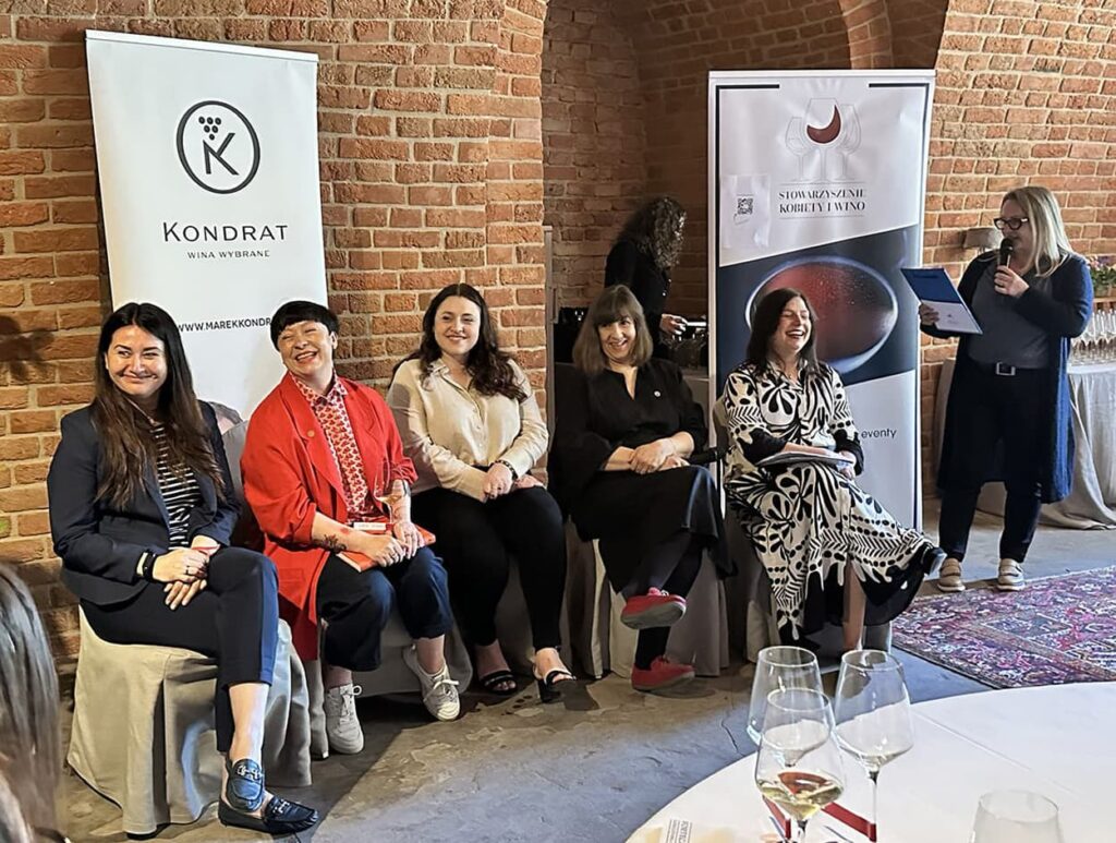 Dla mnie najcenniejszym spotkaniem był Panel członkiń Stowarzyszenia Kobiety i Wino pt. „Kobieta w winnicy i z kieliszkiem” – o dziewczynach, które TO robią. Czyli takich, które tworzą wino, piszą o nim, szerzą wiedzę o kulturze picia – to inspiratorki i wizjonerki, miłośniczki wina i pasjonatki życia. Patrycja Krauze – współwłaścicielka krakowskich Wine Barów: Dzikie Wino i Dzikie Wino Na Kleparzu. Paulina Bytowska z Winnicy Niewinne Pole. Irmina Szpak, założycielka Winnicy L’Opera, zdobyła pierwszy w historii złoty medal dla polskiego wina na konkursie Mundus Vini. Izabela Kamińska – dziennikarka winiarska, autorka książki „Dzikie Drożdże”, prowadzi kanał na YT „Ale wino” i podcast „Dzikie Drożdże”. Anna Kotlińska-Bubała – ukończyła kurs WSET3 i trzy Wine Scholary: Włoski, Hiszpański i Francuski, pracuje w Kondrat Wina Wybrane i potrafi doradzić w kwestii doboru wina jak nikt! Jestem pod ich wielkim wrażeniem! A ciut więcej o dziewczynach można przeczytać tu: Stowarzyszenie Kobiety i Wino.
