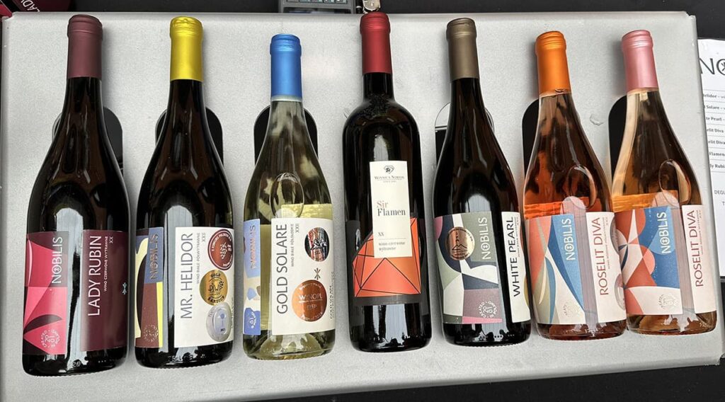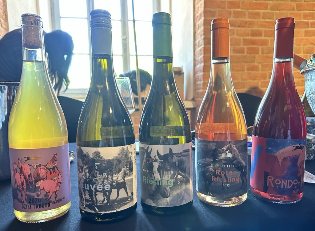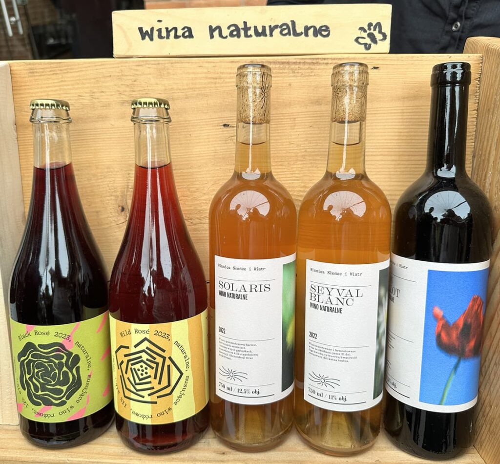 A teraz o winach: musujące, pet-naty, białe, pomarańczowe, różowe, czerwone. Późny zbiór i botryzowane. Nawet wędzone! Od wytrawnych po słodkie i jeden wermut! Ogromy przekrój! Wielki wybór szczepów i kupaży. Bardzo dużo Vitis Vinifery, mnóstwo hybryd, ale też zupełnie nieznane mi szczepy (Siegerrebe, Bronner, Helios, Dakapo, Devin…)