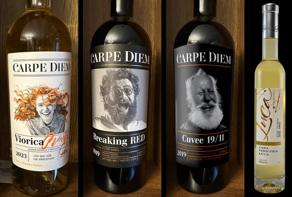 Nie sposób nie napisać o etykietach win Carpe Diem. Jeszcze nie poznałam Iona i nic nie wiedziałam o jego winach, a w pierwszym Wine Barze w Kiszyniowie do którego weszłam, wino które mnie przyciągnęło, było właśnie z serii Carpe Diem!