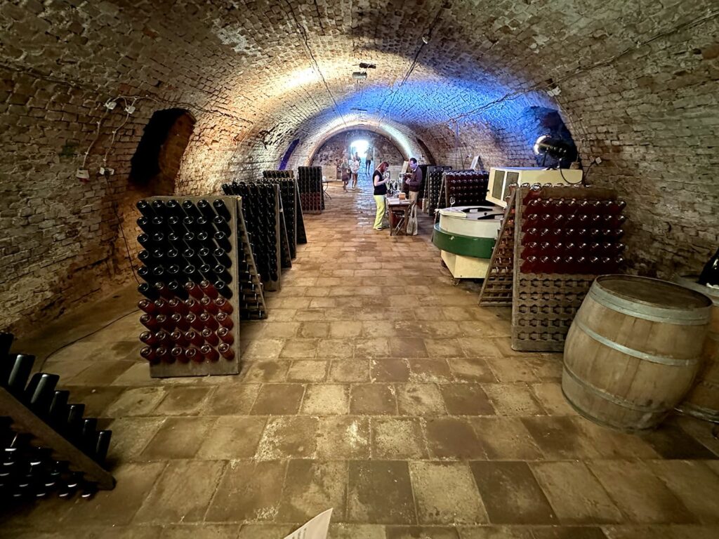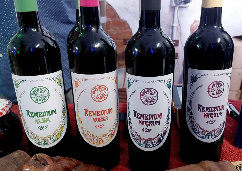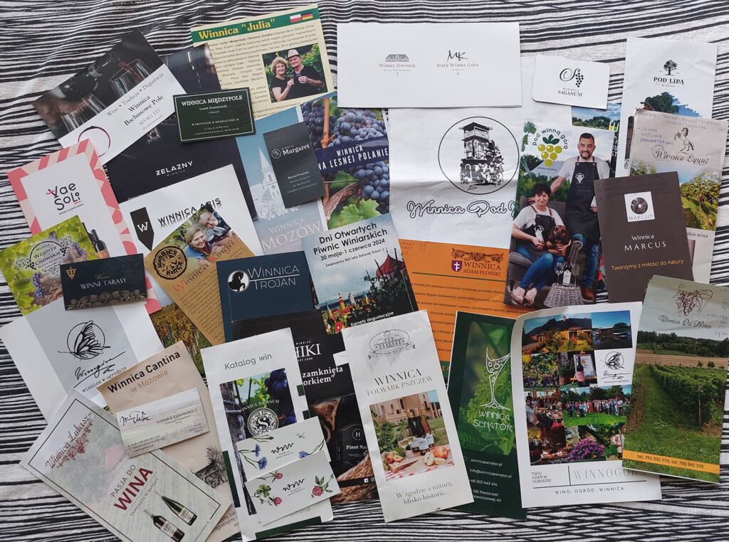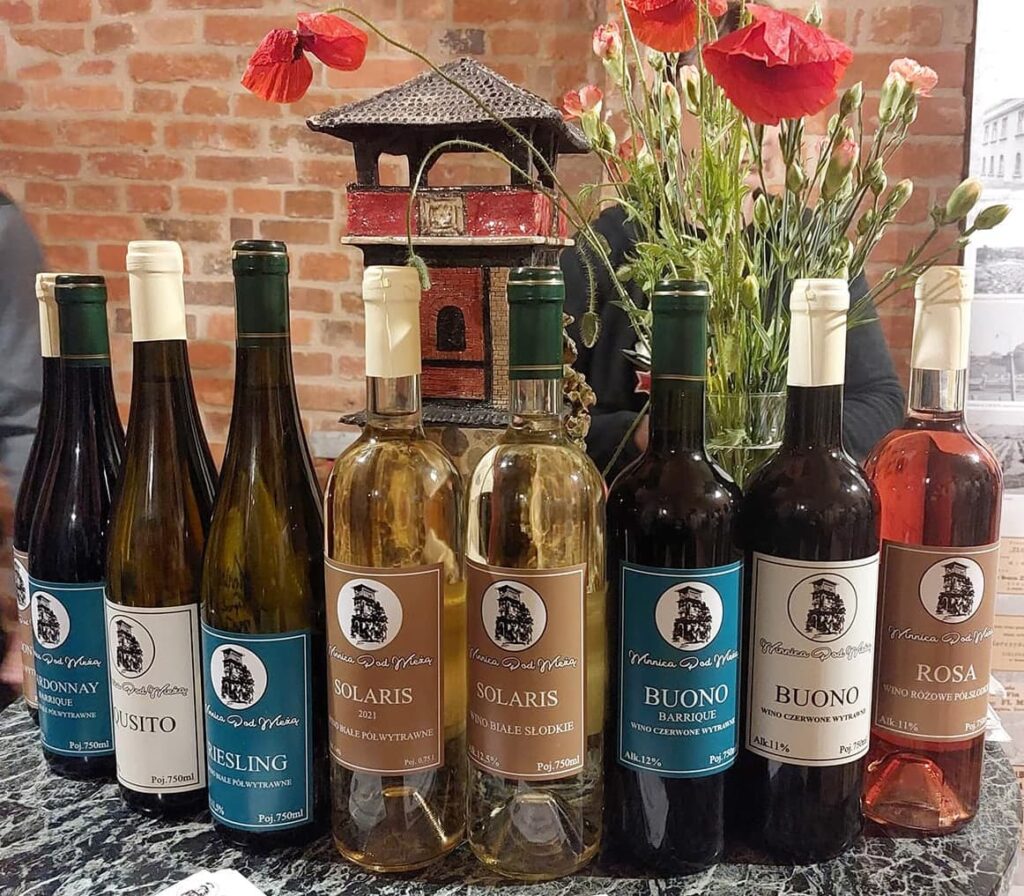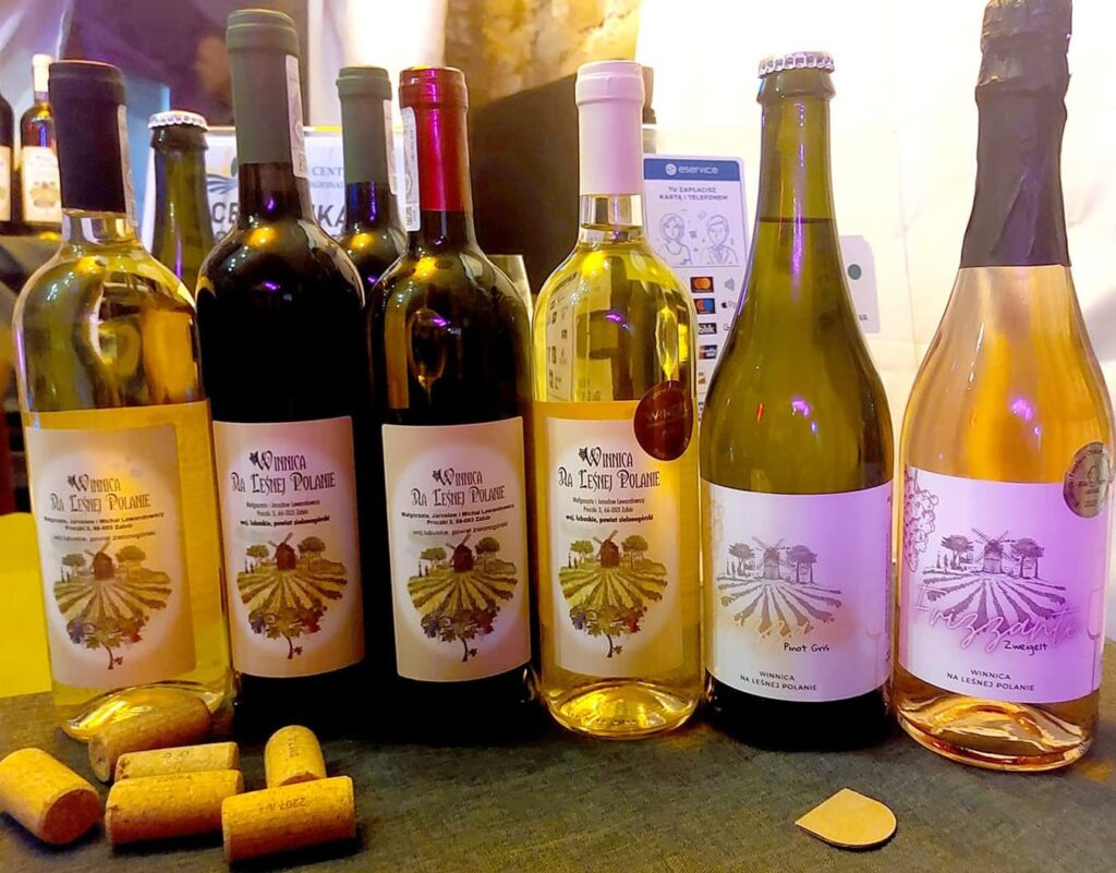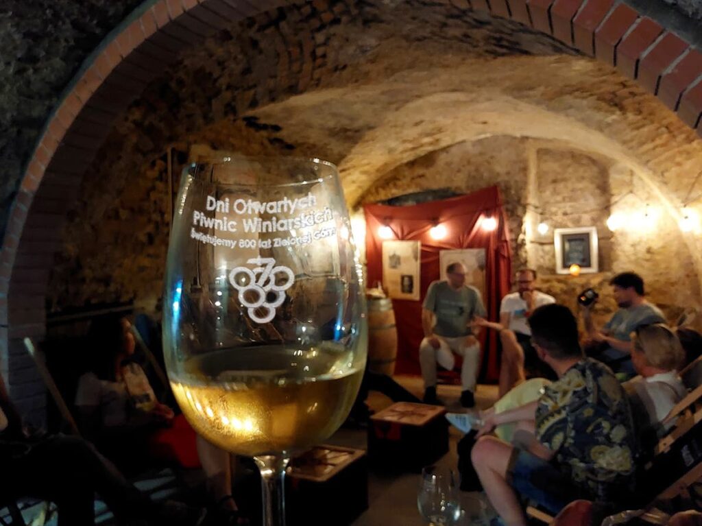 Dni Otwartych Piwnic Winiarskich w Zielonej Górze – co to za szalona impreza! Polecam ogromnie! Na początku kupuje się karnet i dostaje: informator, mapkę, naklejki i piterek z kieliszkiem (a kieliszek z grawerem na pamiątkę). A potem to już jak podchody albo gra miejska – przez 4 dni chodzi się z mapką po całym mieście podążając za strzałkami w poszukiwaniu piwnic. Piwnic jest w sumie 23, co jedna to piękniejsza, a w nich łącznie 32 stoiska lubuskich winnic ze swoimi trunkami. W każdej można porozmawiać z winiarzami, posłuchać ciekawych opowieści i wymienić naklejki na wino. 1 naklejka to 40 ml dowolnego trunku. Wina różne – musujące, spokojne, pet-naty, białe, pomarańczowe, różowe, czerwone – od wytrwanych po słodkie. Niektóre wspaniałe, rześkie, aromatyczne, inne zwyczajne, mnóstwo medalowych, ale i zdarzały się okropne. Dla mnie jak zawsze najlepsze są historie – jak powstała winnica, skąd pomysł na nazwę i etykietki, z jakimi przygodami i problemami muszą mierzyć się właściciele winnic. Mogłabym słuchać godzinami!