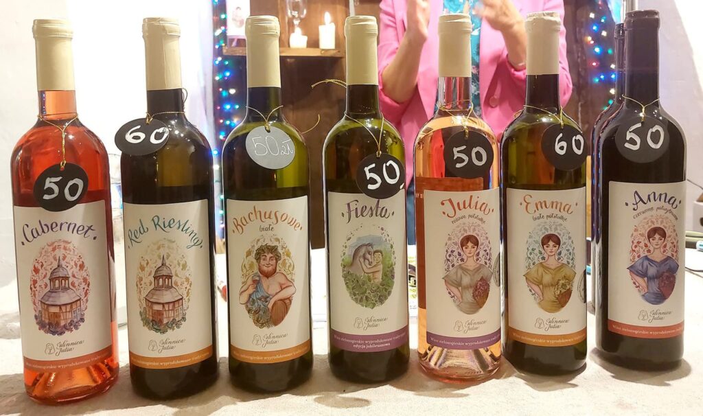 Jednego faworyta nie było, bo sporo fajnych win spróbowałam, ale jak mam o kimś napisać, to wybieram Winnicę Od Nowa. Właścicielami są Maria i Tadeusz Olejarz. Winnica jest nieduża (1 ha), ale bardzo wyjątkowa, bo uprawiają tylko dwa szczepy: Riesling i Pinot Blanc. I z nich robią wina musujące. I tylko musujące! Ale jak je robią! Spróbowałam tylko dwóch i oba świetne. Nie bez przyczyny zdobywają medale na Ogólnopolskich Konkursach Win w Zielonej Górze, Poznaniu i Jaśle. Właściciele przemili, trochę sobie pogadaliśmy o musiakach, przyjęłam nową dawkę wiedzy i nabrałam ochoty, żeby tu wrócić – szlakiem win musujących właśnie.