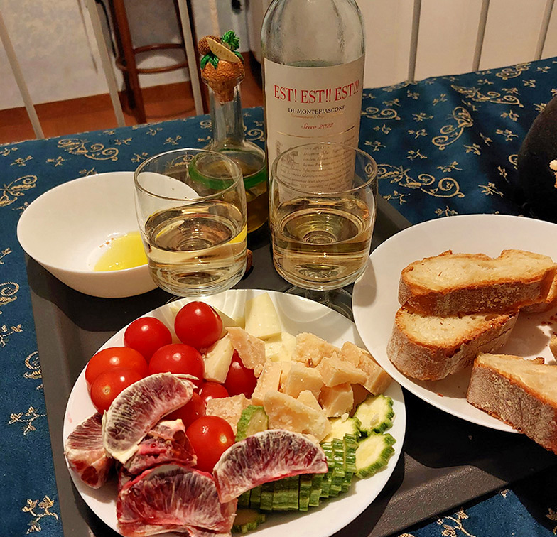 To, które piliśmy było ze szczepu Trebbiano, ale w sklepach można znaleźć różne etykietki, z różnych winnic, w różnych proporcjach, z różnych szczepów: Trebbiano, Malvasia, Procanico, Roscetto.