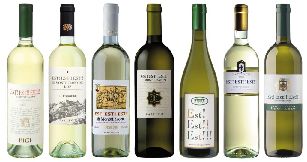 W XII wieku pewien niemiecki biskup udał się do Watykanu na spotkanie z papieżem. Ponieważ droga była długa, wysłał przed sobą prałata-zwiadowcę, by ten sprawdzał wioski położone na trasie w poszukiwaniu najlepszych win. Gdy był pod szczególnym wrażeniem jakości podawanego wina w jakimś zajeździe, miał na drzwiach napisać słowo „Est” (łac. jest), aby podążający jego śladem biskup wiedział z góry, gdzie się zatrzymać. W gospodzie w Montefiascone prałat był tak zafascynowany miejscowym winem, że napisał na drzwiach „Est! Est!! Est!!!” I właśnie stąd wzięła się nazwa tego wina.