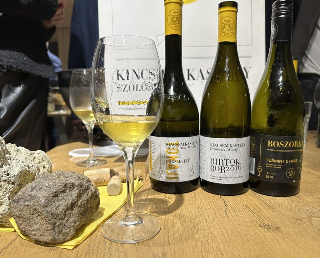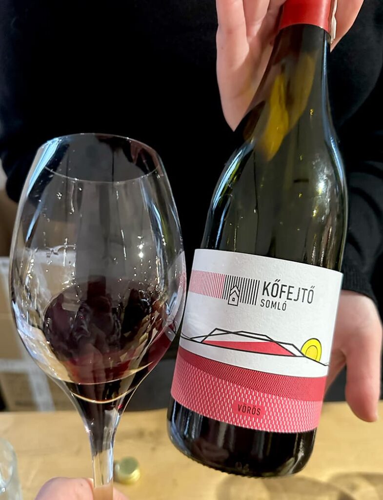 Chociaż event zdecydowanie należał do Furminta, to było też kilka innych szczepów. A wśród setek butelek było tylko jedno wino czerwone! Kőfejtő Somlo to kupaż Merlot + Cabernet Sauvignon + Syrah. Warto o nim napisać, bo picie czerwonego wina z białego regionu jest czymś niezwykłym – trochę nowatorskie, trochę buntownicze. Powstało go tylko nieco ponad 400 butelek. Wino pochodzi z ekologicznej winnicy, fermentowało we francuskim dębie i jest niefiltrowane. A winogrona rosły na wulkanicznym wzgórzu, co jest wyczuwalne w jego smaku.