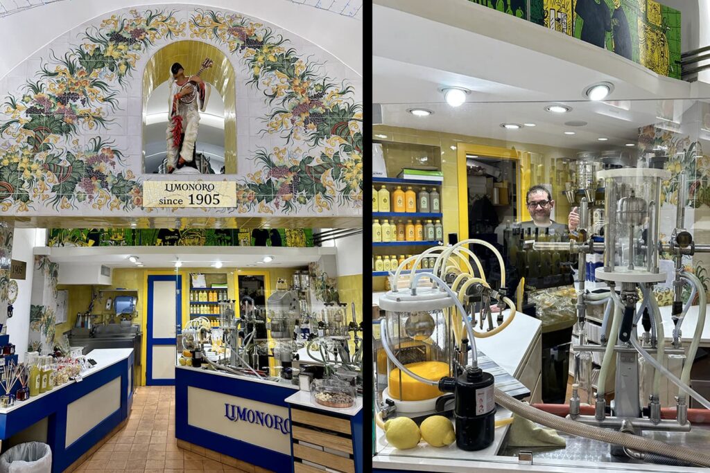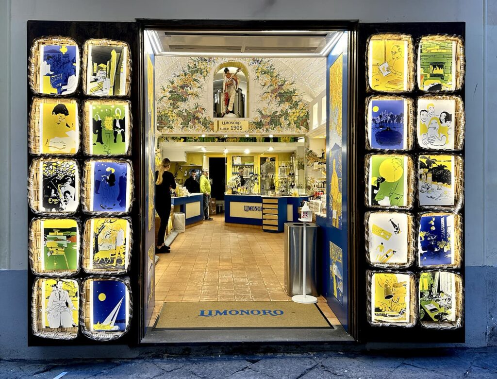 Będąc w Sorrento i przechadzając się uliczkami, zupełnym przypadkiem trafiliśmy na sklep Limonoro. Bardzo charakterystyczny, w żółto-niebieskich barwach. Od razu wiedziałam – tu musimy wejść!