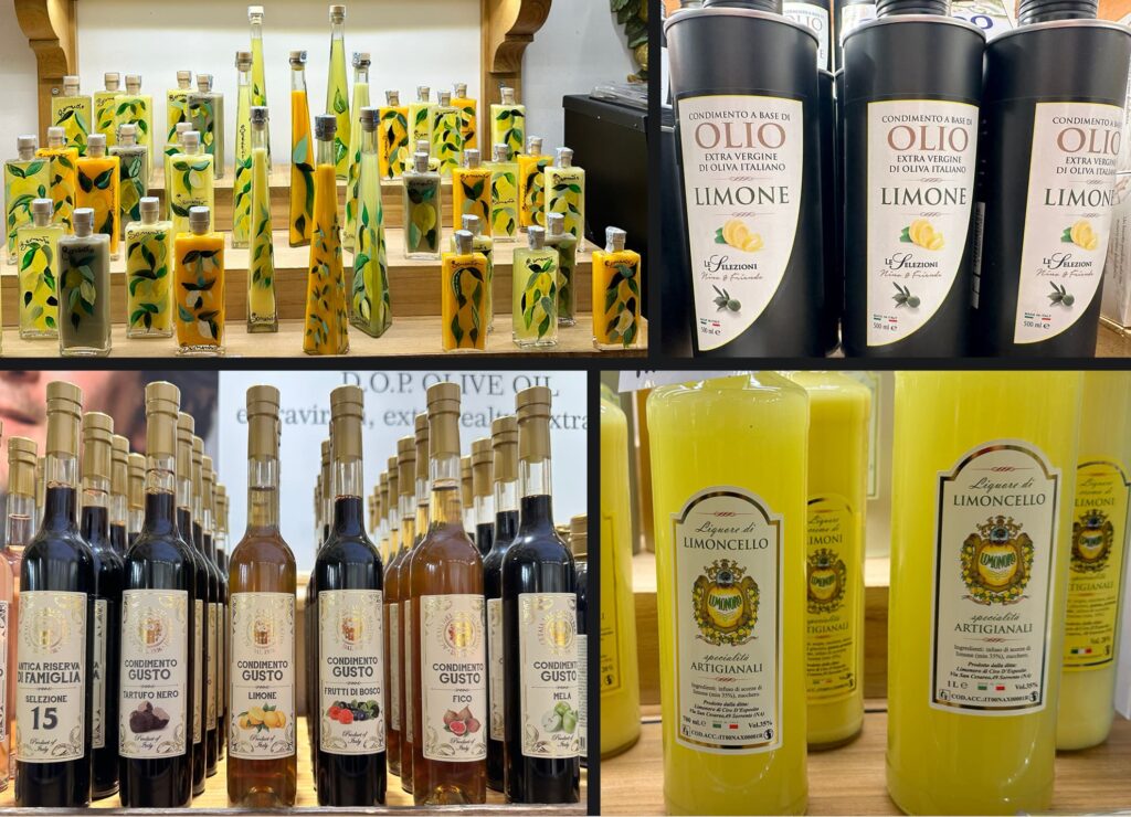 W asortymencie są jeszcze oliwa z oliwek z ekstraktem ze skórki cytryny, ocet balsamiczny o różnych smakach, miody z kwiatów cytryn i pomarańczy, dżemy, czekolady, likiery o przeróżnych smakach (m.in. pistacji, brzoskwini, lukrecji, a nawet fenkuła) i dużo więcej.