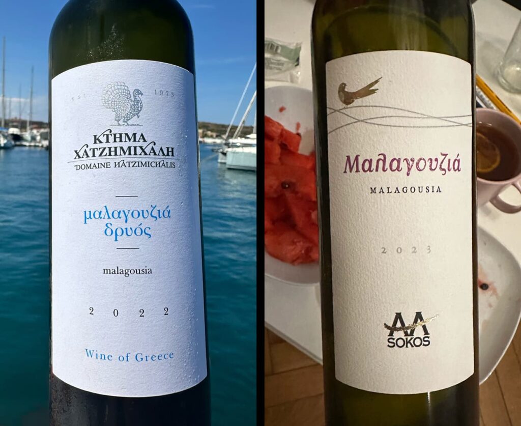 Ta wyjątkowa endemiczna odmiana przeżywa swój renesans od 20 lat. W latach 70. XX wieku była odmianą znaną tylko nielicznym i uważaną za wymarłą. Dziś jest uważana za światowej klasy szczep, z którego z powodzeniem można zrobić wybitne wina wytrawne jak i olśniewające słodkie. Słodkich nie próbowałam, ale wytrawnych aż 5! Pływaliśmy po Cykladach i na każdej kolejnej wyspie szukałam nowej Małgośki do spróbowania. Super było to, że każda kolejna był świetna, ani razu nie było rozczarowania.