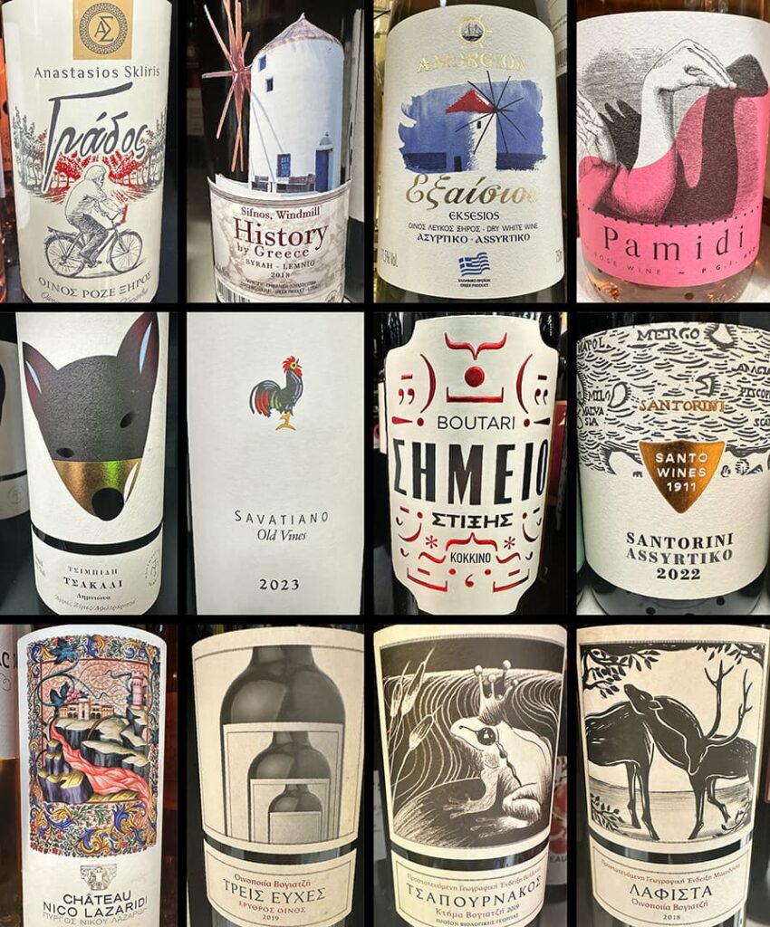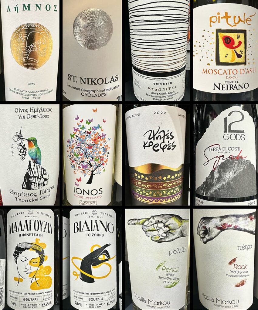 A ponieważ podczas tych 10 dni naoglądałam się bardzo wielu butelek na sklepowych półkach, podrzucam mały przekrój greckich etykiet win, których niestety nie spróbowałam, ale były tak ładne, że nie mogłam przejść obok nich obojętnie.