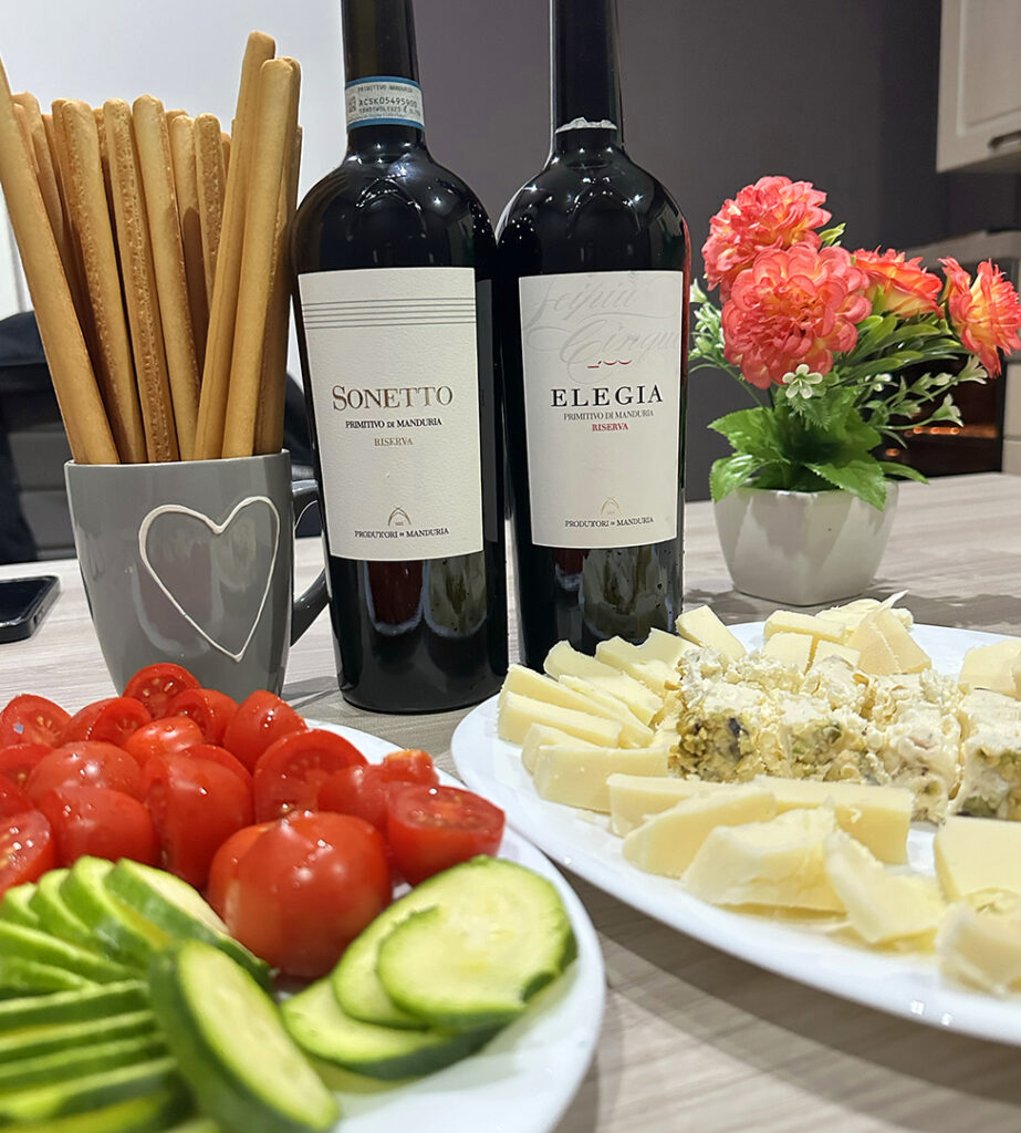 Naszą przewodniczką po muzeum była Katia. Fantastyczna kobieta, która uwielbia opowiadać o winie. Po zwiedzaniu poszliśmy na degustację. Spróbowaliśmy 6 win ze szczepu Primitivo. Ich nazwy nawiązują do muzyki. Bo wino i muzyka zawsze idą w parze – można się nimi delektować i są ucztą dla zmysłów. Każde wino było inne, wszystkie doskonałe.
