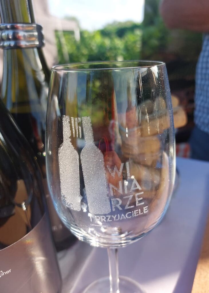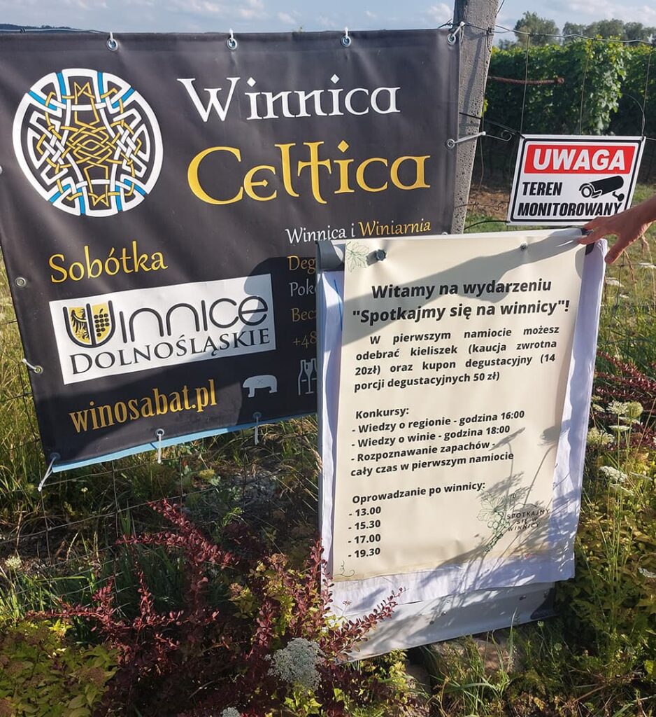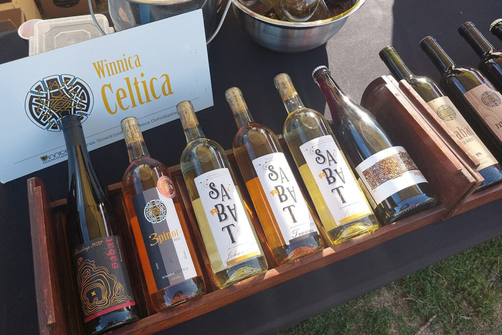 Winnica Celtica. Gospodarz imprezy. Można do nich przyjechać na niespieszne zwiedzanie winnicy, z noclegiem i mnóstwem opowieści w tle. To entuzjaści wina i ciekawych historii – szczególnie tych Celtyckich i Słowiańskich. Mają duży wybór win o mistycznej nazwie Sabat. W tym dość rzadko spotykany w Polsce Merlot – i to w dwóch wersjach – wytrawnej i bardzo wyjątkowej słodkiej – z podsuszanych winogron! W dodatku ma ono etykietę z drewna czereśniowego! Spróbowałam od nich 7 win. Najbardziej zapamiętam biały kupaż o nazwie 3 pinot. Super! Uwielbiam niecodzienne kupaże – ten zdecydowanie do takich należy – Pinot Gris, Pinot Blanc, Pinot Noir.