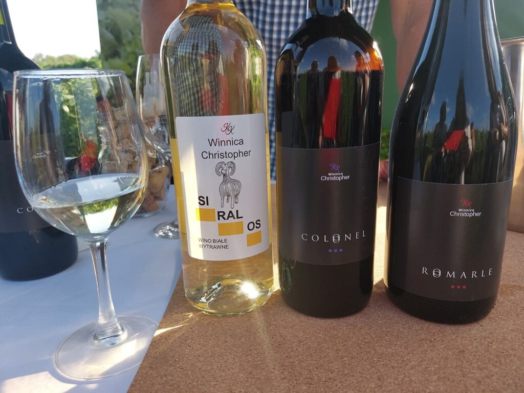 Winnica Christopher. Spróbowałam 2 win. Fajnie bawiliśmy się nazwami i dużo żartowaliśmy z przesympatycznym właścicielem Krzysztofem. Nazwy win to swoiste kalambury – Romarle to kupaż Rondo, Marechal Foch i Leon Millot. A przeczytajcie Siralos od końca – od razu będzie wiadomo jaki to szczep.