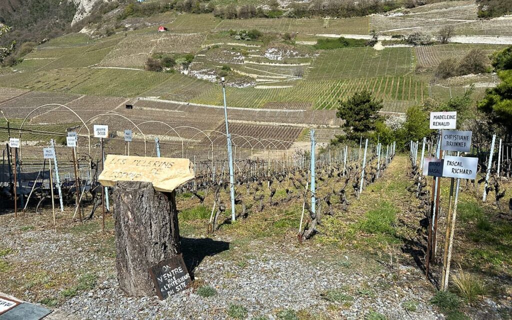 Vigne à Farinet położona jest na malowniczym wzgórzu Ardente (Płonące Wzgórze) z pięknym widokiem na Alpy i otaczają ją winnice pełne starych krzewów.