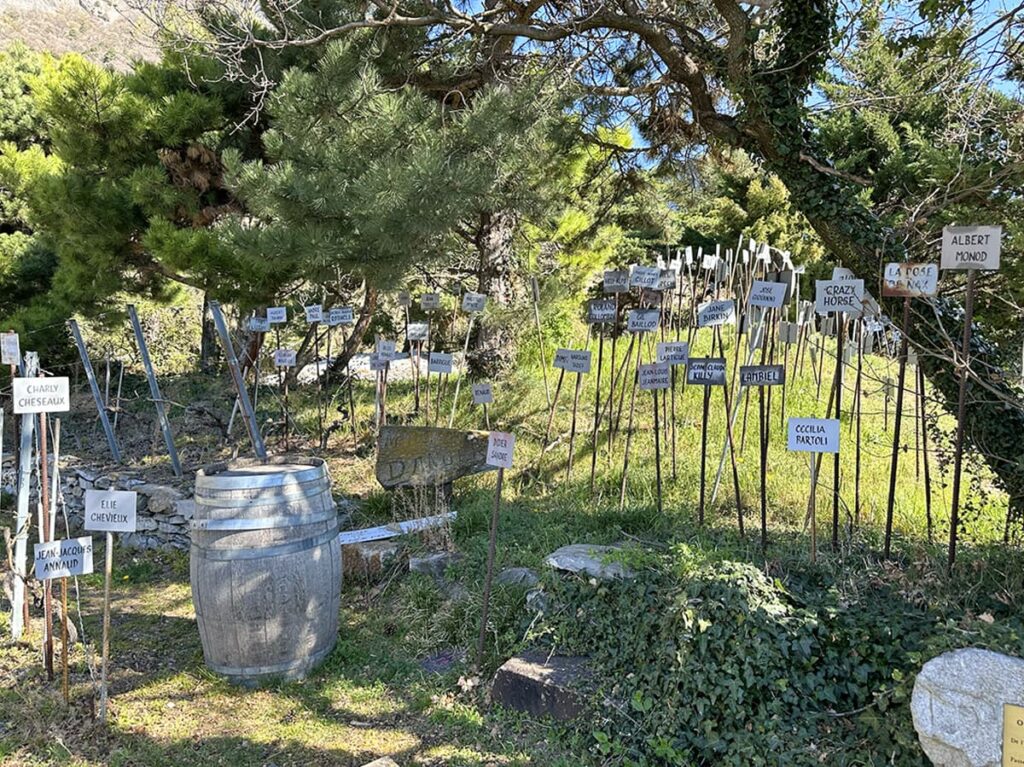 W Vigne à Farine pośród setek tabliczek jest jedna niezwykła – przełamana na pół z nazwiskiem Abbé Pierre. Przez 5 lat był on właścicielem winnicy zanim przekazał ją Dalajlamie. Był duchowym rzecznikiem ubogich i wykluczonych. Podczas II wojny światowej należał do francuskiego ruchu oporu, walczył z nazizmem, ratował Żydów, a potem przez wiele lat wzywał do solidarności i pomocy. Był jedną z najbardziej cenionych postaci we Francji – przez 16 lat wybierano go „Ulubioną osobowością Francji” (w kolejnych latach tytuł ten należał m.in. do Zinédine Zidane i Sophie Marceau). Był też nazywany świętym naszych czasów. Po jego śmierci sugerowano nawet jego kanonizację. A w 2023 r. wyszły na jaw liczne oskarżenia wobec niego – o nadużycia i molestowanie seksualne kobiet i dziewczynek na przestrzeni 50 lat… Ujawniono także, że Watykan był świadomy tych zarzutów od 1955 roku… Papież Franciszek przyznał, że Watykan wiedział o oskarżeniach co najmniej od jego śmierci w 2007 roku. Wpłynęło oficjalne pismo z prośbą o śledztwo w tej sprawie. Jednak w lutym 2025 r. paryska prokuratura ogłosiła, że nie może wszcząć postępowania karnego przeciwko duchownemu, który zmarł w 2007 r. – ze względu na przedawnienie.