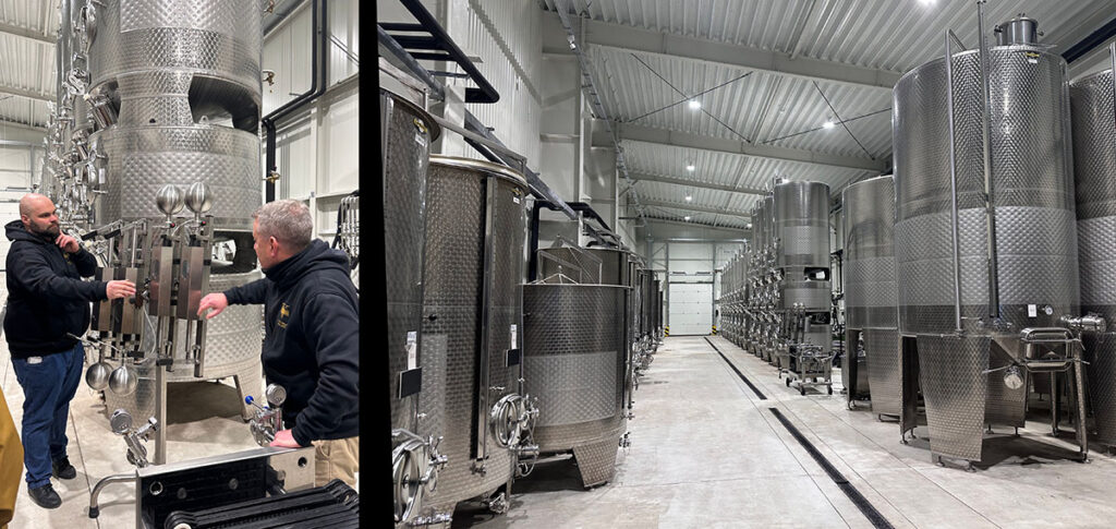 Winnica znajduje się niedaleko Grójca, 50 km od Warszawy i wciąż jest młodziutka – pierwsze nasadzenia były w 2022 roku. Rok temu miała powierzchnię 22 ha i już była największą na Mazowszu. Teraz liczy 40 ha i jest w w pierwszej czwórce największych winnic w Polsce. Warto tu przyjechać na dłużej niż kilka godzin, bo miejsce ma wiele do zaoferowania. Piękny klasycystyczny pałac, ogromny park, oranżeria, Rezerwat przyrody Modrzewina, pole golfowe, własne pszczoły, 80 ha sadów, 22 sale konferencyjne, 140 miejsc noclegowych (będzie dużo więcej, bo trwa budowa hotelu).