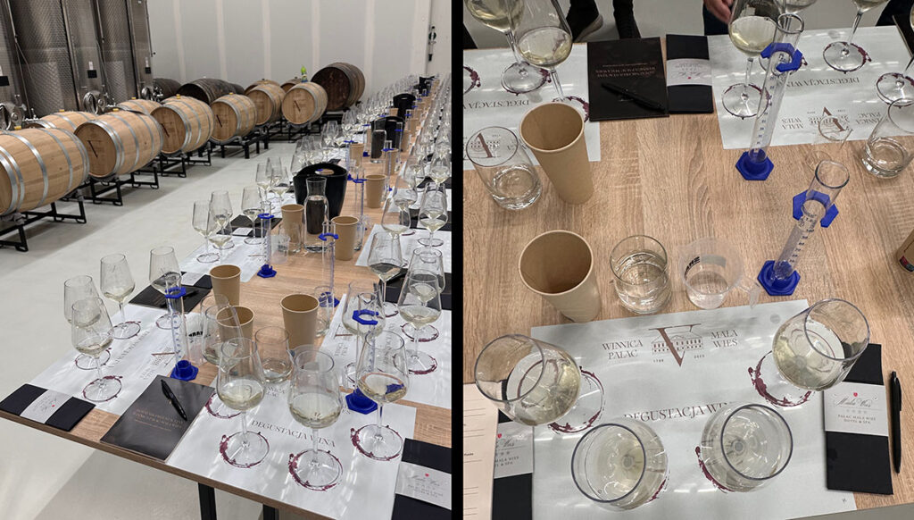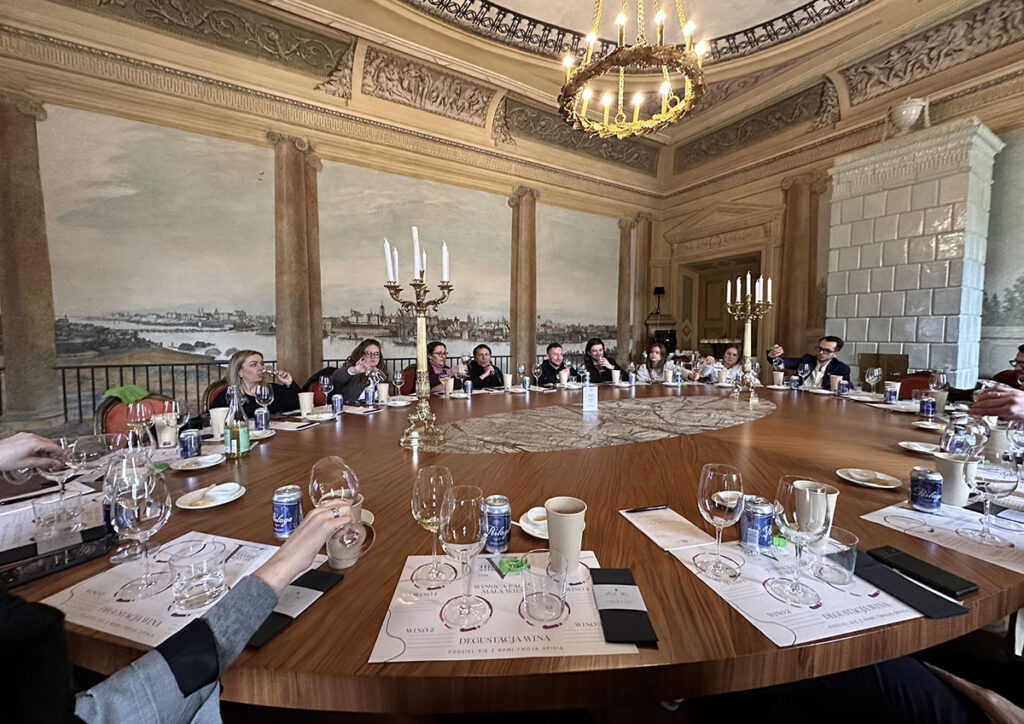 Na piąte spotkanie – i to był crème de la crème – pojechałam na Premierę Rocznika 2025 i Urodziny Winnicy do Małej Wsi. Spędziłam tam 10 godzin! Wzięłam udział w degustacji win, oprowadzaniu po Pałacu, rewelacyjnych warsztatach z kupażowania wina oraz enosensoryki, a na zakończenie w klimatycznej kolacji. Było fantastycznie!