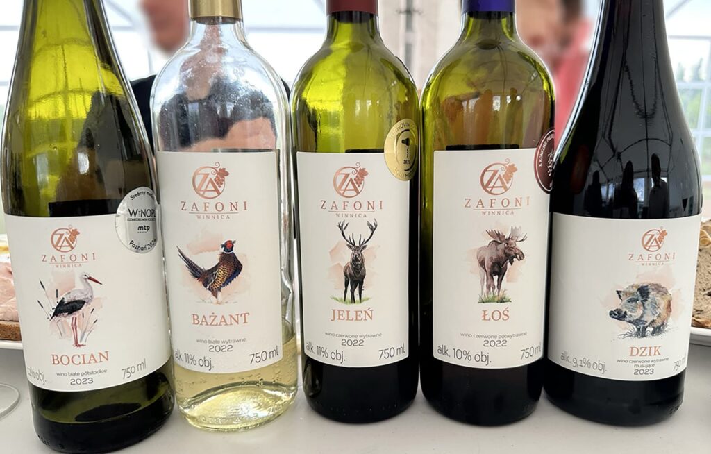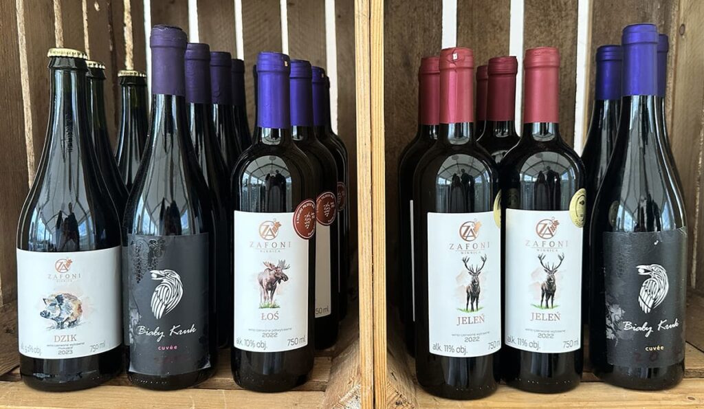Winnica Zafoni to niecały hektar upraw Solarisa, Johanitera, Regenta i Monarcha. Oprócz winogron rosną tu także maliny i sady jabłkowe, z których robią pyszne soki oraz cydr. Pierwsze wina Zafoni pojawiły się na rynku w 2023 r. i od razu zdobyły 2 medale: złoty i brązowy, a w tym roku dołączyło także srebro!