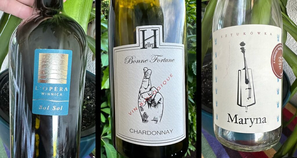 Tego wieczoru otworzyliśmy 14 butelek! 1 musujące, 4 białe, 2 różowe, 6 czerwonych i 1 wzmacniane. Ciekawe, że tym razem najwiecej win było francuskich i hiszpańskich. Było też dwóch przedstawicieli z Polski – uwielbiam to, że na tych moich degustacjach dookoła świata zawsze pojawia się nasze rodzime wino. Tym razem zagościła Winnica L’Opera z Sol Sol, o którym już pisywałam przy okazji Solarisów i Winnica Sztukówka z Maryną, czyli różowym, soczystym kupażem Rondo i Regent.