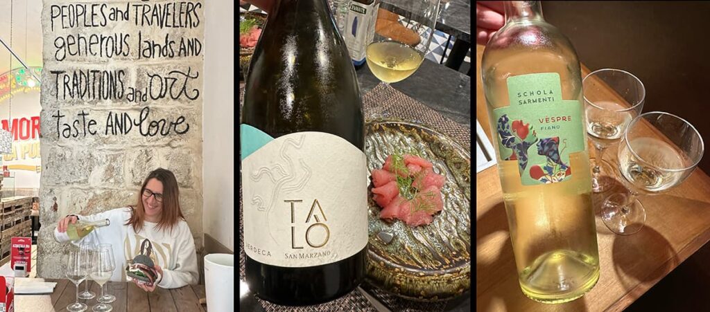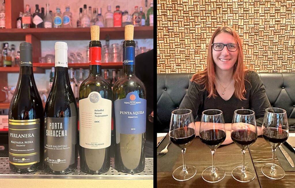 Znaleźliśmy się tu zupełnie przypadkiem, wysiadając spontanicznie z pociągu w drodze do Lecce, w poszukiwaniu kolejnych przygód. Dzięki temu trafiliśmy do uroczego Wine Baru, gdzie sympatyczny sprzedawca opowiedział nam o lokalnych winach i zrobił mini degustację.