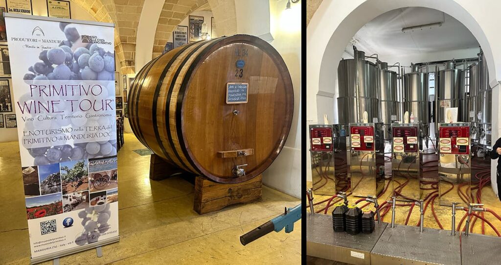 Miasto wina! Któż nie słyszał o Primitivo di Manduria! Świetne muzeum Primitivo i jego muzeum. Ciekawy widok lokalnych mieszkańców kupujących wino na kanistry. Polecam – to niezapomniane miejsce!