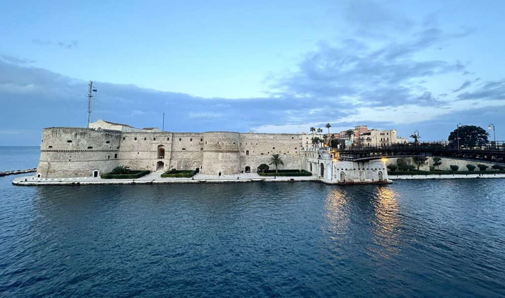To takie Włochy, na które decydują się nieliczni – biedne, zniszczone, obciążone problemami, a mieszkańcy stamtąd uciekają, gdyż huta, w której tam produkowano stal, przez lata wytwarzała zabójcze toksyny. W 2021 r. w głośnym procesie w tej sprawie skazano 35 osób, niektóre na ponad 20 lat więzienia. Stara miasta część jest położona na wyspie i choć ma ogromny potencjał, to jest opuszczona i zaniedbana. A my właśnie tam spaliśmy. Szliśmy na wyspę przez most pieszo, o zachodzie słońca, a wracaliśmy o wschodzie – niezwykłe widoki, niezapomniane przeżycie. W tej surowości i smutnej historii miasta tkwi jego urok, ale – nie jest to miejsce dla każdego. Króluje tu cucina povera czyli kuchnia ubogich – proste, ale niezwykle pyszne potrawy. Mam szczęście do ludzi – w samolocie poznałam Giovanniego z Alberobello, który mi opowiedział o Taranto, bo jego wuj tam mieszka. Polecił mi niezwykle miejsce na jedzenie – stołują się tam głównie pracownicy portu. To była uczta! Rewelacyjne jedzenie.