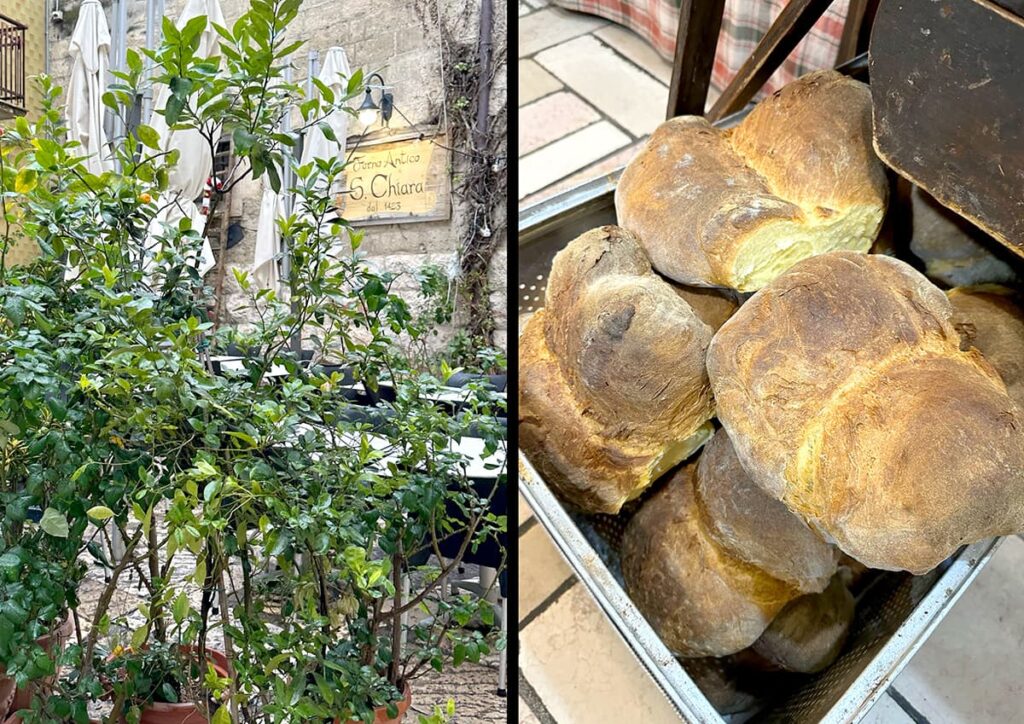 To tam znajduje się najstarsza działająca piekarnia na świecie! Jest czynna nieprzerwanie od 1423 roku! A tamtejszy piec opalany drewnem używany jest od średniowiecza! Chleb Pane di Altamura jest chroniony oznaczeniem DOP. Miejscowi twierdzą, że pozostaje świeży przez miesiąc! U nas przetrwał jeden dzień, bo jedliśmy go bez opamiętania skubiąc bochen i spacerując uliczkami kolejnych miasteczek. Podobno Horacy w XVI wieku powiedział o nim, że to najlepszy chleb na świecie! Oprócz chleba robią rewelacyjną foccacię – spróbowaliśmy trzech rodzajów – wszystkie palce lizać!