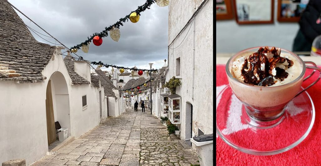 Zdecydowanie najbardziej malownicze miejsce w Apuli. Słynie z maleńkich, kamiennych, białych domków trulli z okrągłymi dachami – wyglądają cudownie. Szczególny ich widok jest w dzielnicy Rione Monti, gdzie znajduje się ich ponad 1000! Niektóre są zamieszkałe, ale w większości znajdują się sklepiki, knajpki i apartamenty. Polecam nocleg w jednym z nich. I sklepik, który słynie z peperoncino! Tu papryczki są głównym składnikiem wszystkiego – dżemów, słodyczy, likieru. Jest limoncello z chili, mus do serów Dynamit i rewelacyjna Caffè al peperoncino – czyli kawa z chili.