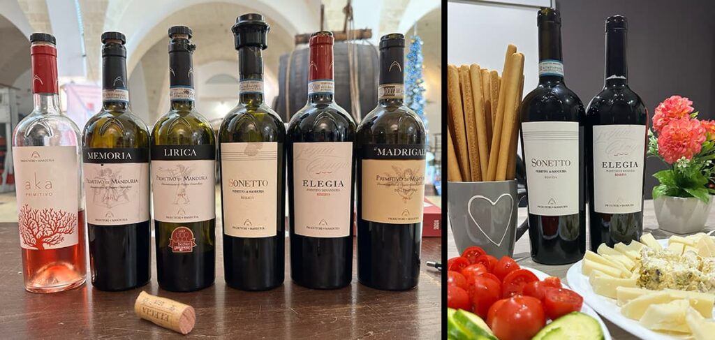 Król Apuli, który wysławił ten region winiarsko. To potężne wina o intensywnym smaku czerwonych owoców, często takich aż dżemowatych, z posmakiem pieprzu i anyżu. Mają niską kwasowość i delikatną słodycz, są gęste i skoncentrowane. Będąc w Apulii rok wcześniej, trafiłam do Mandurii, czyli królestwa Primitivo, o czym pisałam tu: Primitivo i jego muzeum w Apulii. Polecam – to naprawdę niezwykłe miejsce!